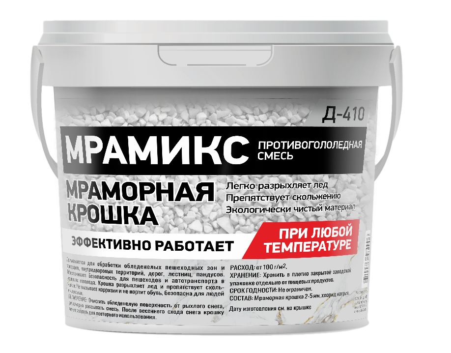 Применяется для обработки обледенелых пешеходных зон и тратуаров, внутридворовых территорий, дорог, лестниц, пандусов. Обеспечивает безопасность для пешеходов и автотранспорта в условиях гололеда. Крошка легко разрушает лед и препятствует скольжению. Не вызывает коррозии и не портит обувь, безопасна для людей и животных.